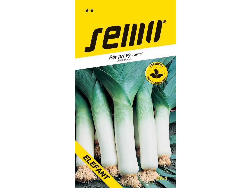 ELEFANT – rychle rostoucí odrůda vhodná k přezimování na poli a sklizeň od časného jara. Rostlina vysoká 65 – 85 cm má rozkladité, tmavě zelené, silně ojíněné listy. Konzumní část stvolu je dlouhá průměrně 10 cm, široká 3 – 6 cm, na průřezu okrouhlá, pevná. Délku konzumní části můžeme prodloužit přihrnutím stvolu. Vegetační doba je 180 – 200 dnů, ze 100 m2 lze získat 300 – 500 kg tržních rostlin podle sklizňového období a pěstebních podmínek. Sklízíme postupně od října až do jarních měsíců následujícího roku.