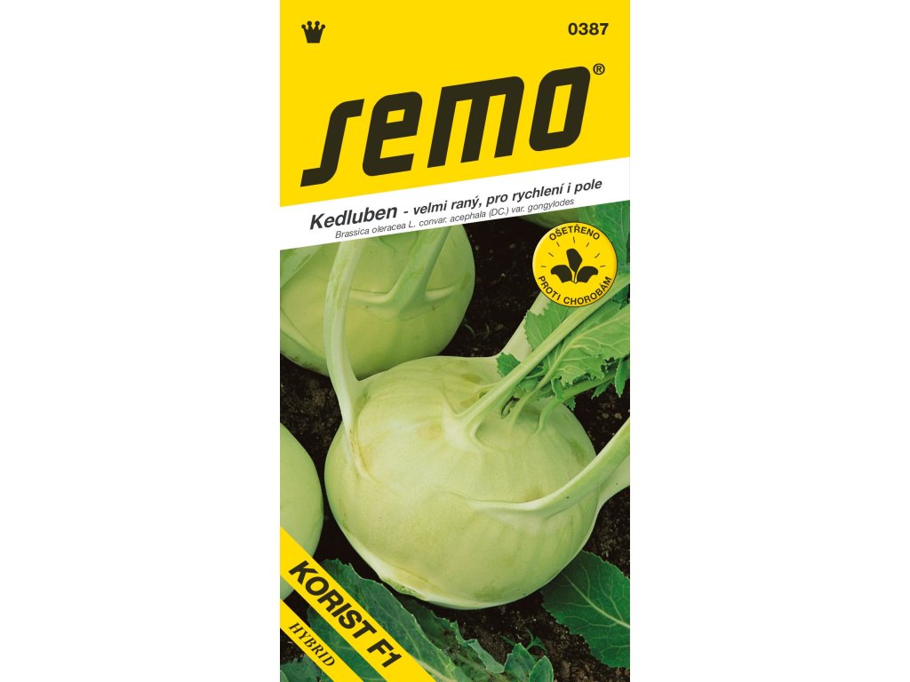 KORIST F1 (kód 0387) – velmi raná odrůda bílé kedlubny populární u profesionálních zahradníků. Je určená pro polní pěstování i rychlení. Ploše kulovitá bulva má sněhobílou dužninu s jemnou, delikátní chutí. Nemá sklon k dřevnatění. Vegetační doba je 65 dní od výsadby. Můžeme vysévat od ledna do poloviny července. Vysazujeme do sponu 30 x 30 cm.