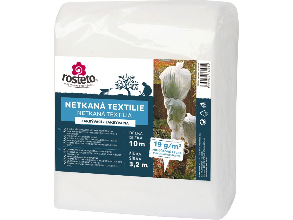 Bílá netkaná textilie je určena k ochraně rostlin před mrazem, krupobitím a živočišnými škůdci. Propouští světlo i vodu a její hmotnost 19g/m2 umožňuje zakrývání rostlin bez nutnosti budování konstrukce.