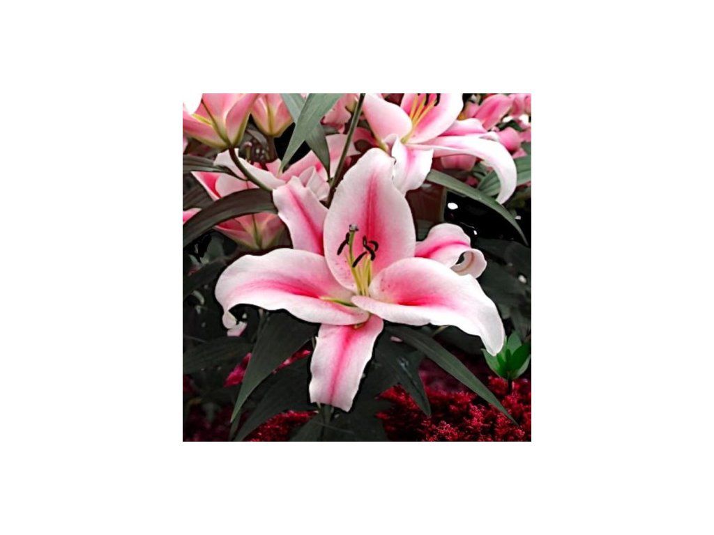 Lilie 'Marriott' je výrazná odrůda orientální lilie (Orienpet) s velkými, dekorativními květy, které zaujmou svou růžovou barvou, bílým okrajem
