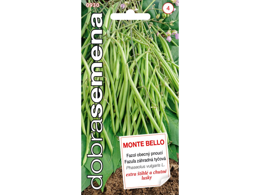 Monte Bello - raný pnoucí fazol s velmi jemnými a štíhlými lusky výjimečné chuti. Lusky jsou bez pergamenové blány a mají pouze 8 mm v průměru. Pnoucí rostlina má lusky rovnoměrně rozmístěné a poskytuje sklizeň po dlouhou dobu. Pěstujte u opory na slunném a chráněném stanovišti.