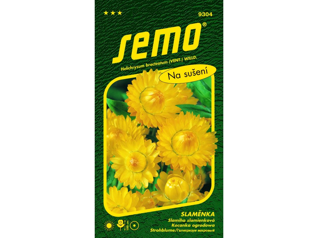 Vzpřímeně rostoucí, větvená letnička s kopinatými zelenými listy. Suchomázdřité úbory jsou používané hlavně na sušení, sklízíme je v poupěti před otevřením zákrovu. Je vhodná i na záhony a k řezu čerstvých květů. Vyhovují ji slunné, před větrem chráněné polohy a výživné, lehčí půdy. Má velké žluté květy a dorůstá do výšky 100cm.