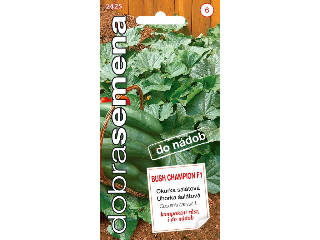Bush Champion F1 – salátová okurka s kompaktním růstem. Je vhodná pro malé zahrádky i do nádob, na terasy a balkóny. Plod je 20-25 cm dlouhý, tmavě zelený s řídkými ostny, křehký a chutný. Pro nasazení plodů potřebuje opylení, vyžaduje přítomnost včel nebo jiného hmyzu. Odrůda vyšlechtěná pro pěstování za zvláštních podmínek (hobby odrůda pro zahrádkáře).