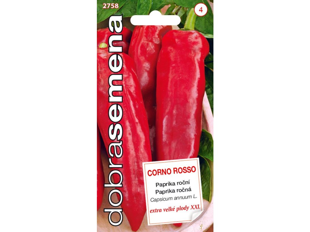 Corno Rosso - extra velké plody se silnou a šťavnatou stěnou. Tradiční španělská odrůda pěstovaná po celém světě ve dvou barevných formách – červené a sytě žluté. Odrůda je vhodná pro skleníky i polní pěstování. Vyniká nejen velkými plody, ale i vysokým výnosem. Pro klíčení je důležitá stabilní teplota 20-24 stupňů celsia. Nejlépe se jí daří v záhřevné, plně osluněné lokalitě.