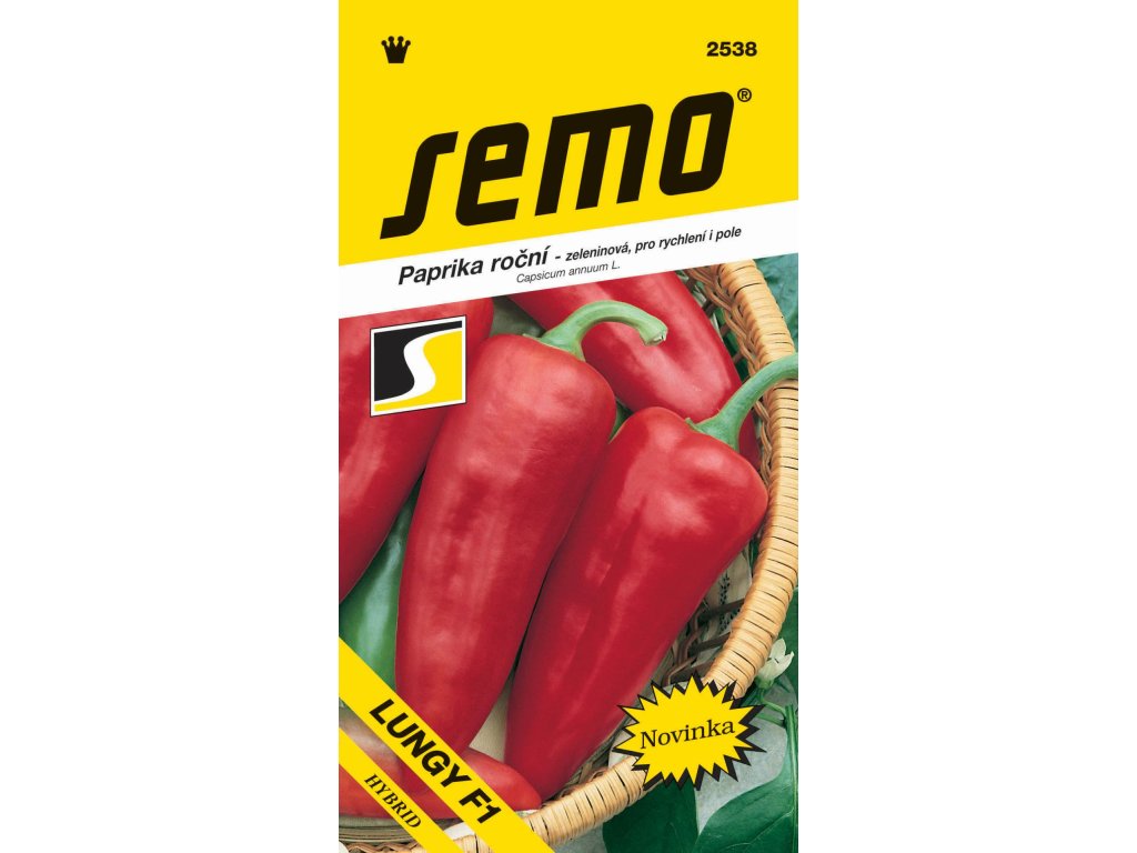 LUNGY F1 – velmi raný hybrid s dobrým zdravotním stavem. Je vyššího vzrůstu, plody jsou delší jehlance, v technické zralosti zelené, v botanické tmavě červené. Plody jsou velmi vhodné i ke sterilaci, kdy se chovají jako pravé kapie. Pěstitelé určitě ocení univerzálnost hybridu jak po stránce pěstitelské, tak z hlediska použití plodů.
