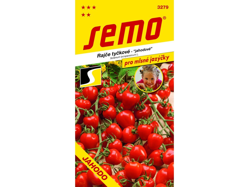 kolekce PRO MLSNÉ JAZÝČKY. Název této rané odrůdy s bujnějším vzrůstem vychází z tvaru i velikosti jejích plodů. Ten je opravdu jahodový s typickým žebrováním. Plody o hmotnosti 16-20 gramů jsou výtečné sladké chuti, ale přitom dlouhodobě skladovatelné a velmi odolné k praskání. JAHODO vytváří větvený vijan plodů s násadou 16 a více plodů na vijanu. Je určeno především ke sklizni jednotlivých plodů. Jedná se o výnosné rajče, které netrpí předčasným opadem plodů. Vhodné pro pěstování na poli, ve folníku i ve skleníku.